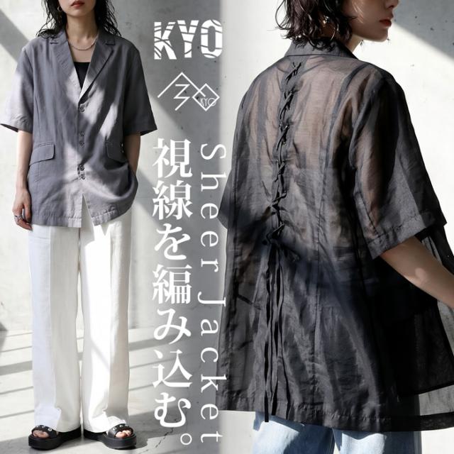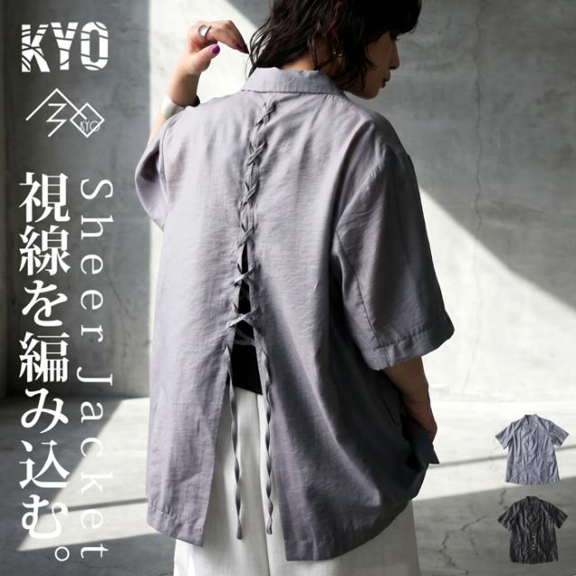 KYO-4018 シアー ジャケット テーラード 透け感 無地 羽織り 前開き 軽量 薄手 ゆったり 体型カバー リラックス モード ナチュラル 大人カジュアル 高見え 着回し シェルボタン風