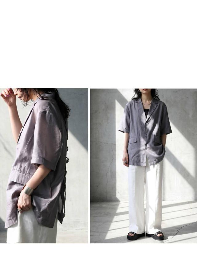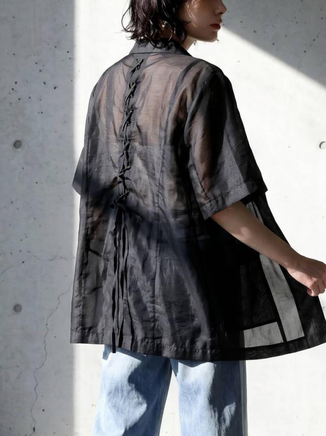 軽やかなシアー素材を使用した、抜け感のある半袖ジャケット(シアージャケット・テーラードジャケット)です。