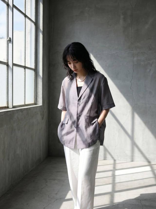 袖丈は程よい半袖で、軽量かつ薄手の素材が春夏にぴったりの涼やかな着心地を叶えます。