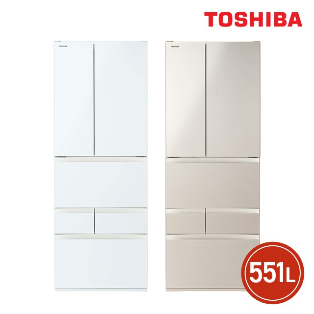 商品名 東芝 551L 6ドア冷蔵庫 VEGETA GR-Y550FH メーカー 東芝 メーカー型番 GR-Y550FH(EW)、GR-Y550FH(EC) カラー グランホワイト、サテンゴールド メーカー保証期間 お買い上げ日より1年間です。 外形寸法(約) 幅68.5×奥行69.9×高さ183.3cm 据付必要奥行寸法 70.2cm ドア数 6枚 製品質量 112kg 定格内容積 551L 容量 ----------------------