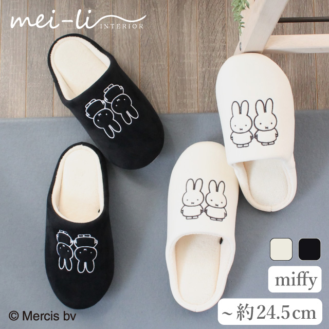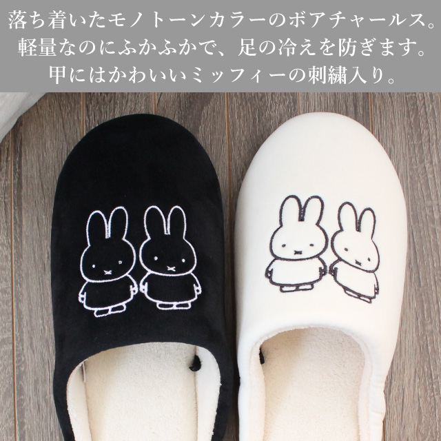 スリッパ ミッフィー 洗える チャールス モノトーン ボアインソール 秋 冬 暖かい かわいい 室内 ルームシューズ 送料無料 1足