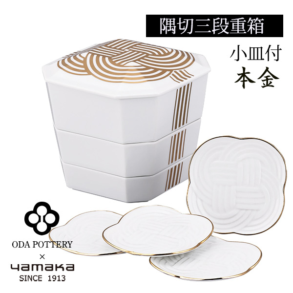 結 Musubi 重箱小皿揃 (金結び) 〈YMK143-381〉 隅切三段重箱 おせち料理 ひな祭り 節句祝い 七五三祝い ホーム—パーティ クリスマスパーティ r7d