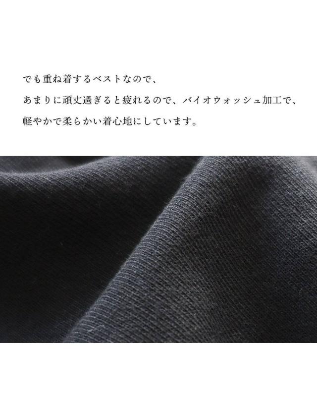 ・しかも裏はほわっとた起毛させた暖かな素材感なので、袖のないベストの重ね着でもかなり暖かく過ごせます。