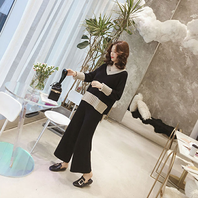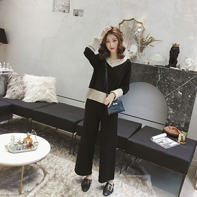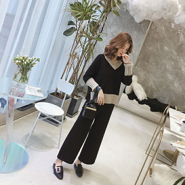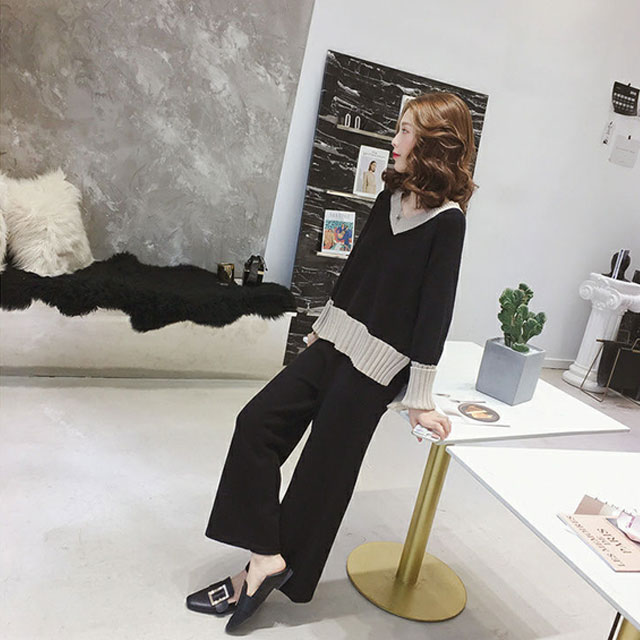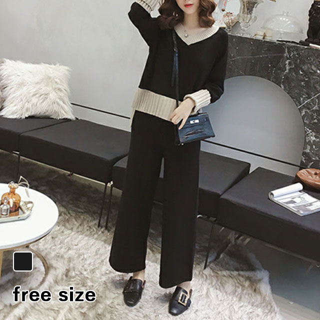 春新作 新作 送料無料 レディース ニットセットアップ ゆったり Vネックニットトップス ニットパンツ セットアップ ボトムス カジュアル 韓国風 オシャレ ゆったり 体型カバー