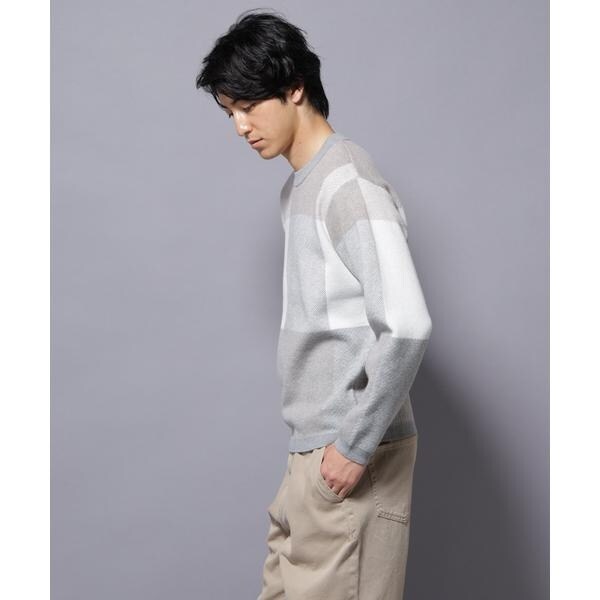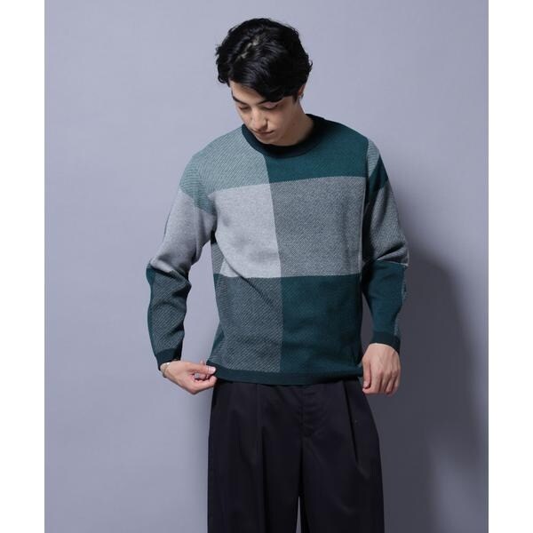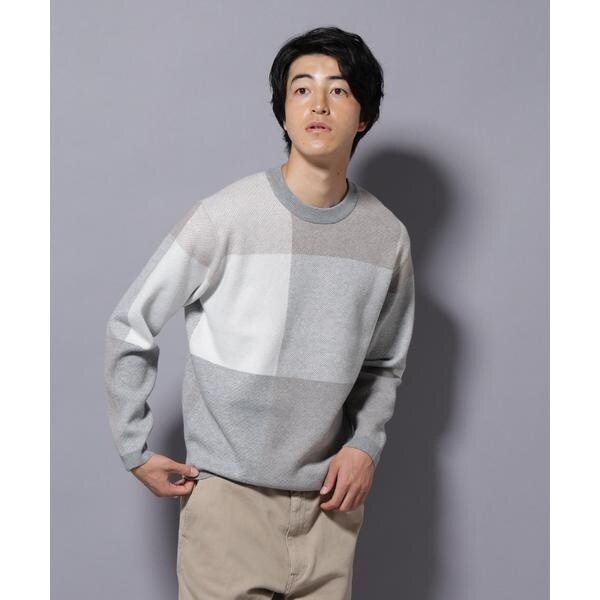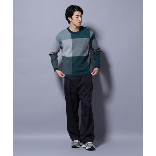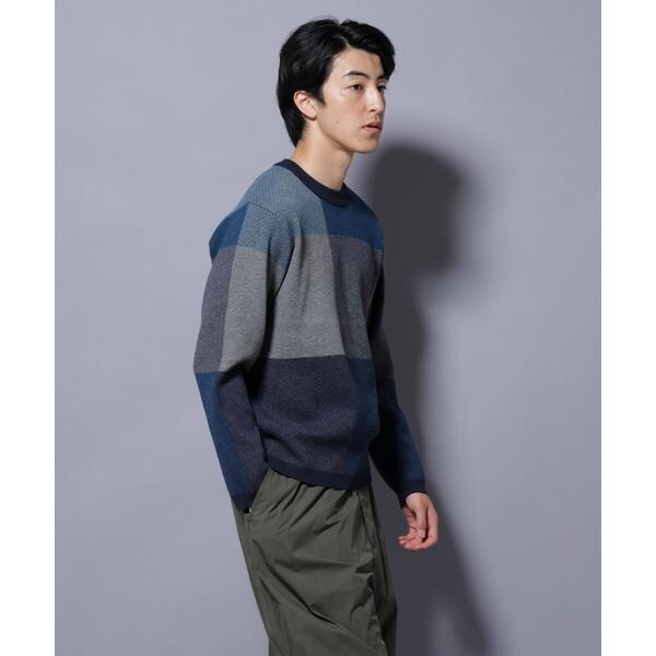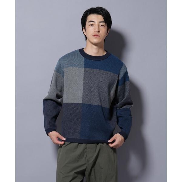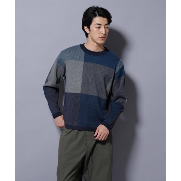 ナノユニバース(NANO universe)/ブロックチェッククルーネックニット