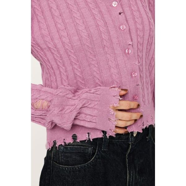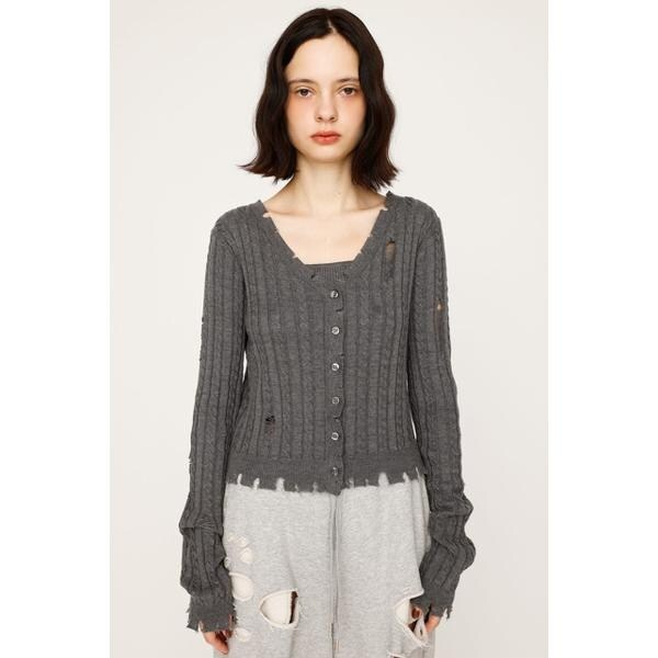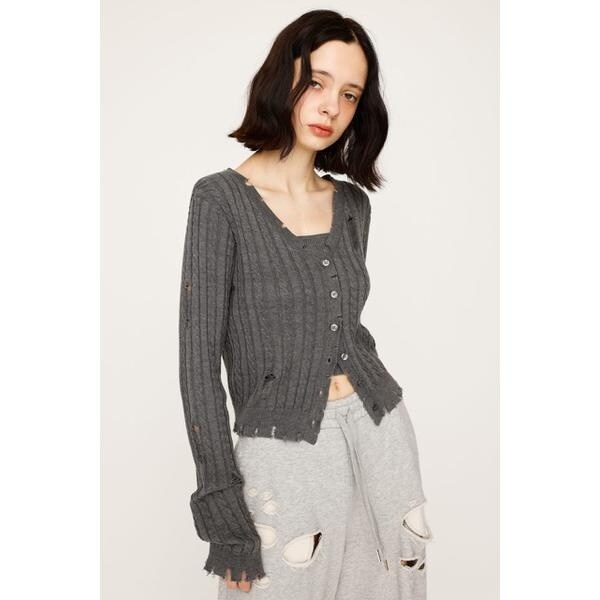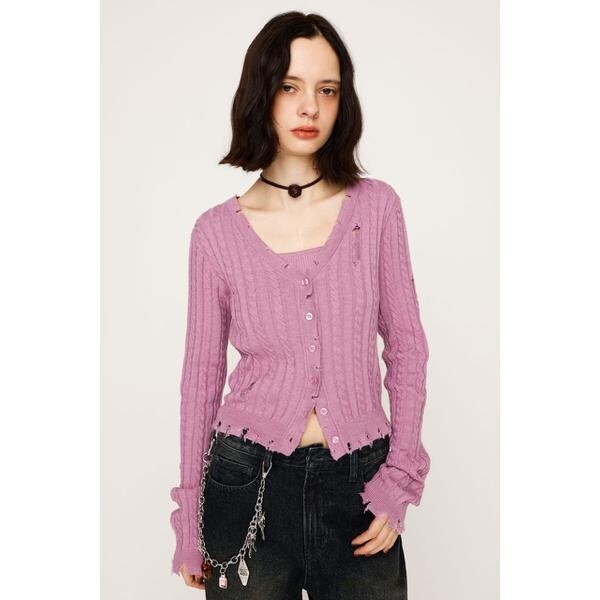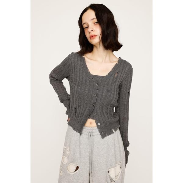 【V/N CRASH 2P TOPS】■POINT:クラッシュデザインが目を引く、着回し抜群のニット2ピースです。■DETAIL:同素材のキャミソールとセットになったトップスとしてもカーディガンとしても使用いただけるアイテム。程よいクラッシュと裾のダメージがリメイク感のあるデザインです。程よい空きのVネックのカーディガンでデコルテ周りを綺麗に見せてくれます。定番のモノトーンカラーに加えて、トレンドのピンクの4色展開でご用意しております。■STYLING:セットで着るのはもちろん、別々で着用しても可愛いアイテム。インナー次第で様々なスタイリングを楽しんでいただけます。ボトムスはデニムなどのカジュアルなアイテムから綺麗めのスカートまで幅広いスタイリングと相性の良いアイテムです。■FABRIC/MATERIAL:程よい厚さのニット素材を使用。■透け感:部分的にあり■光沢感:なし■伸縮性:なし■裏 地:なし◆本品はデザインとしてダメージ加工(生地切れ、ほつれ、穴あき、リペア等)をしています。着脱及び着用時の引っ掛かりにご注意下さい。加工特徴により、一点一点表情が異なります。洗濯や着用の繰り返し等により、ダメージ箇所が広がる場合がありますが、加工特性をご理解頂き、製品の変化をお楽しみ下さい。[注意事項]※画像の商品はサンプルです。実際の商品と仕様、加工が若干異なる場合があります。※画像の商品は光の照射や角度、お使いのモニター環境により、実物と色味が異なる場合がございます。※着用、お取り扱いの際は、アテンションタグをご確認ください。※一部予約商品につきましては生産上の都合によりお届け予定日や店頭発売と前後する場合もございます。※追加生産商品は、一部の店舗、通販で販売中の場合がございます。予めご了承下さい。