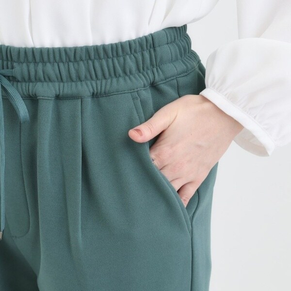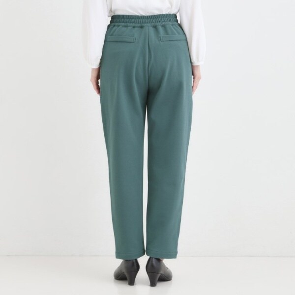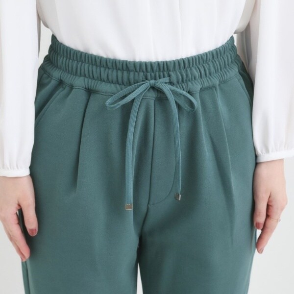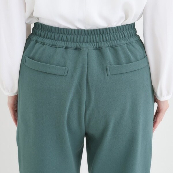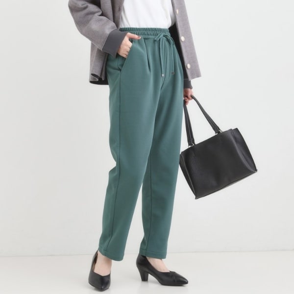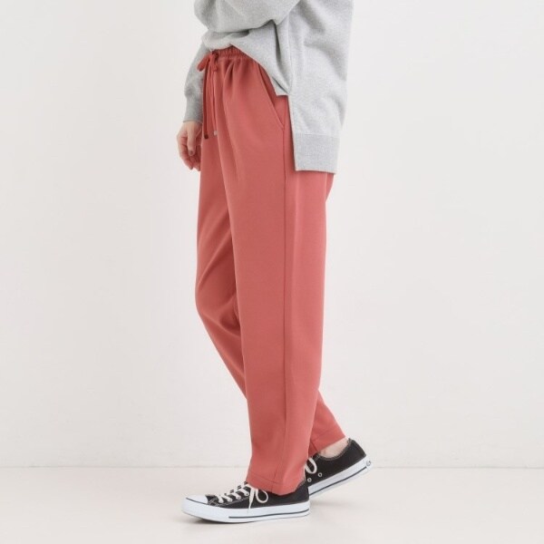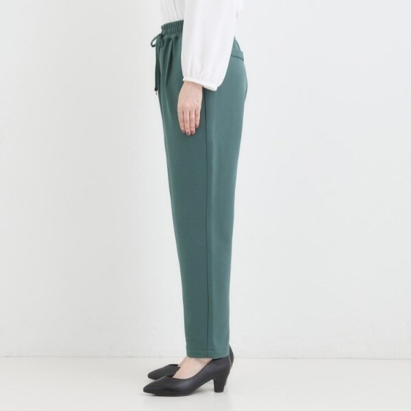腰回りはゆったりとしていて脚のラインを拾いにくく、裾に向かって細くなるテーパードシルエットで、脚全体をすっきりと見せてくれます。