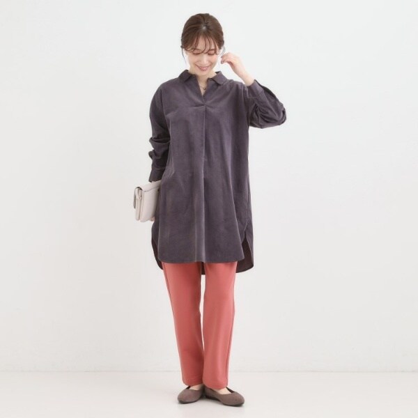カジュアルでもキレイめにも合わせやすく、日常からお仕事着まで幅広いシーンに対応できるアイテムです。