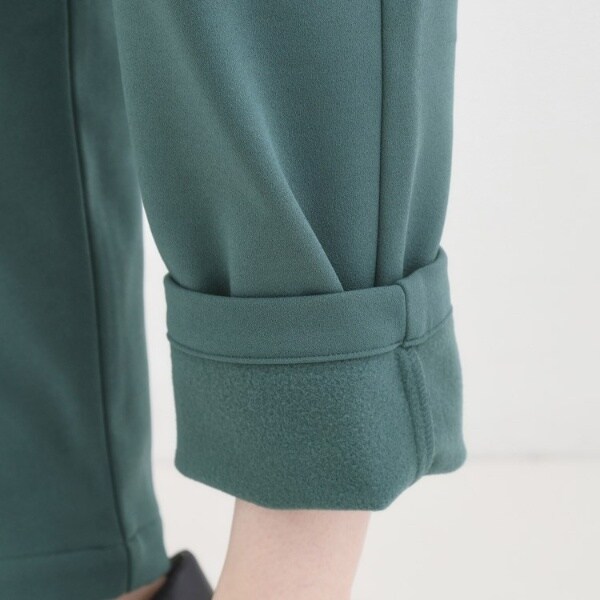 肌触りが優しく、裏起毛素材で暖かい着用感もポイントです。伸縮性のある素材なので楽に着ていただけます。