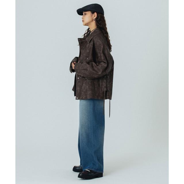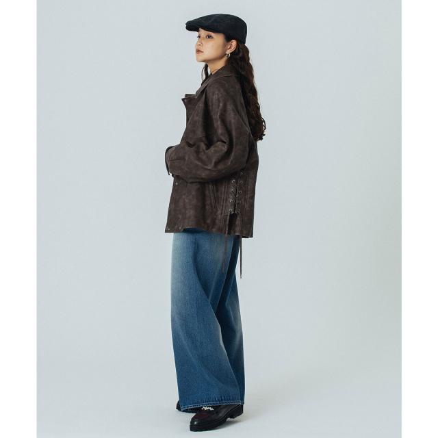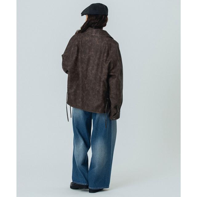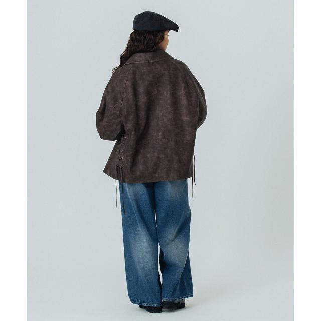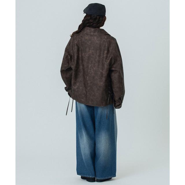 ヴィンテージ感が魅力の、レースアップ付きフェイクレザーライダース