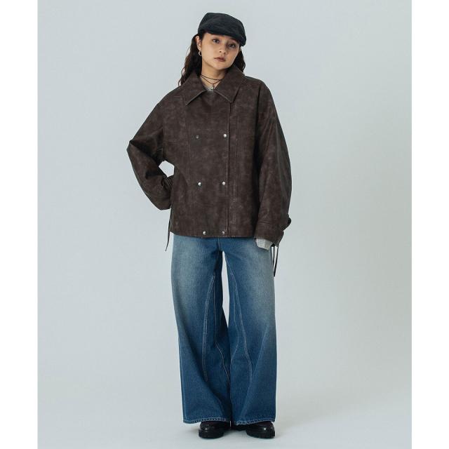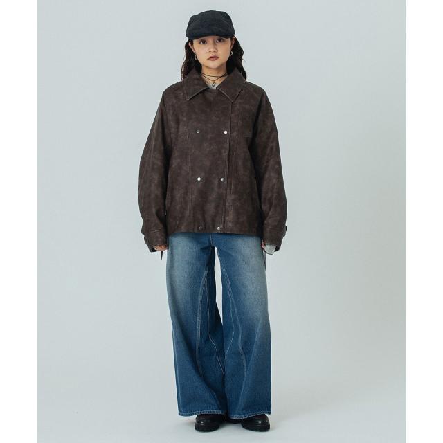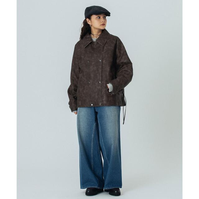 ヴィンテージ感のあるフェイクレザーが本格的な印象で、こなれ感のある着こなしが楽しめるライダースジャケットです。