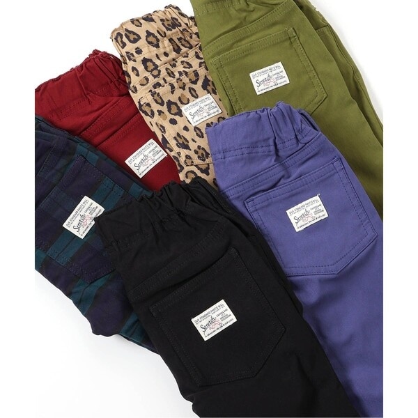 ■素材:パープル/ネイビーブルー/ブルー/カーキ/グリーン/マスタード/ベージュ/レッド/キナリ/ブラック:裏起毛ハイパーストレッチデニム・ツイル・先染めチェック、グリーン、レーヨン74% ポリエステル22% ポリウレタン4%、、ブルー/ネイビーブルー、綿66% ポリエステル32% ポリウレタン2%、、ベージュ/ブラック/カーキ/キナリ/マスタード/パープル/レッド、レーヨン74% ナイロン22% ポリウレタン4%