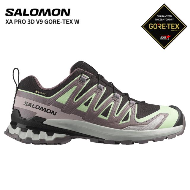 サロモン レディース 防水 トレイルランニングシューズ SALOMON XA プロ 3D V9 ゴアテックス XA PRO 3D V9 GORE-TEX Black/Patina Green/Gray Violet L47882300