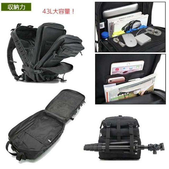 ミリタリー バックパック 登山 リュックサック 43L 対応 旅行 アウトドア サバゲー 登山用 リュック デイバッグ デイバック パソコン メンズ レディース 大容量 登山リュックサック バッグ 登山用品 ノートpc 収納