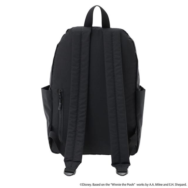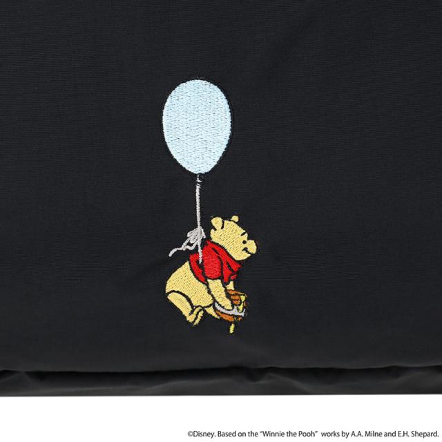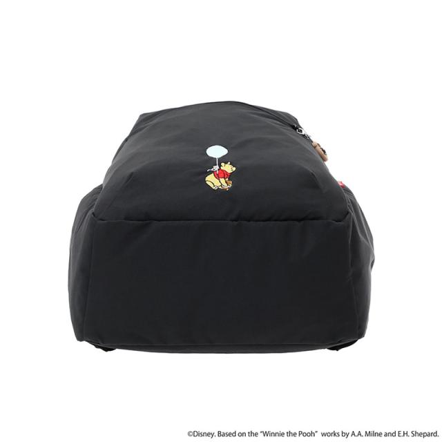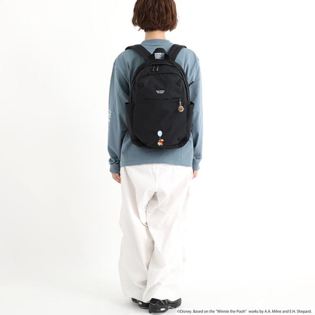 フロントに風船で空を飛ぶプーさんを刺繍した、遊び心あふれるデザインの数量限定バックパック。ハニーポットのチャームが付いたジッパープーラーがアクセントになっています。素材には軽量なナイロンタッサーを採用。