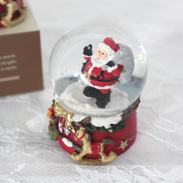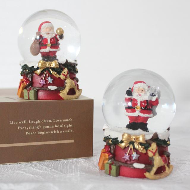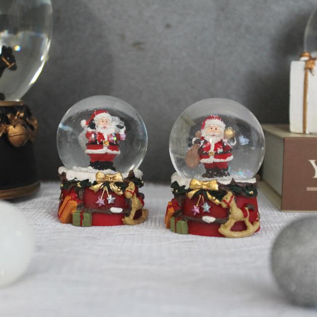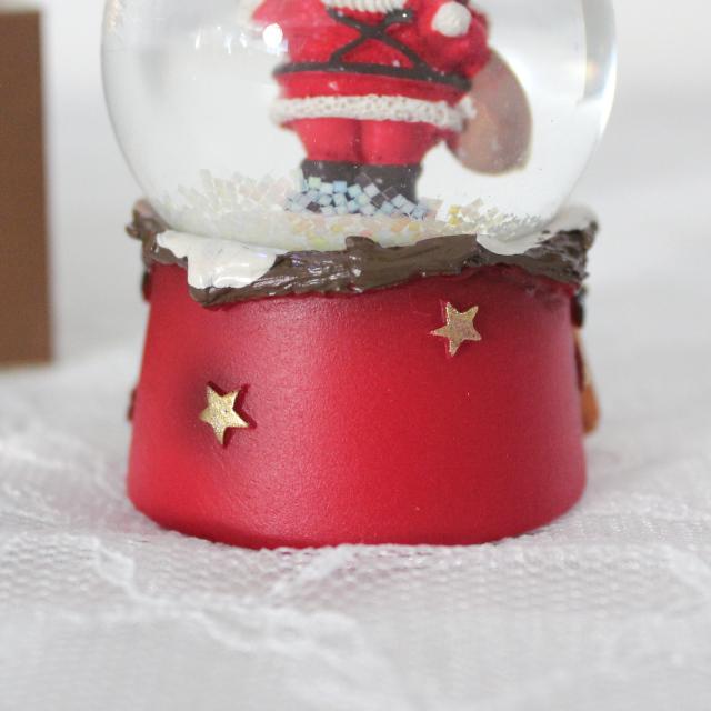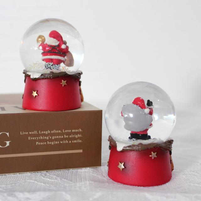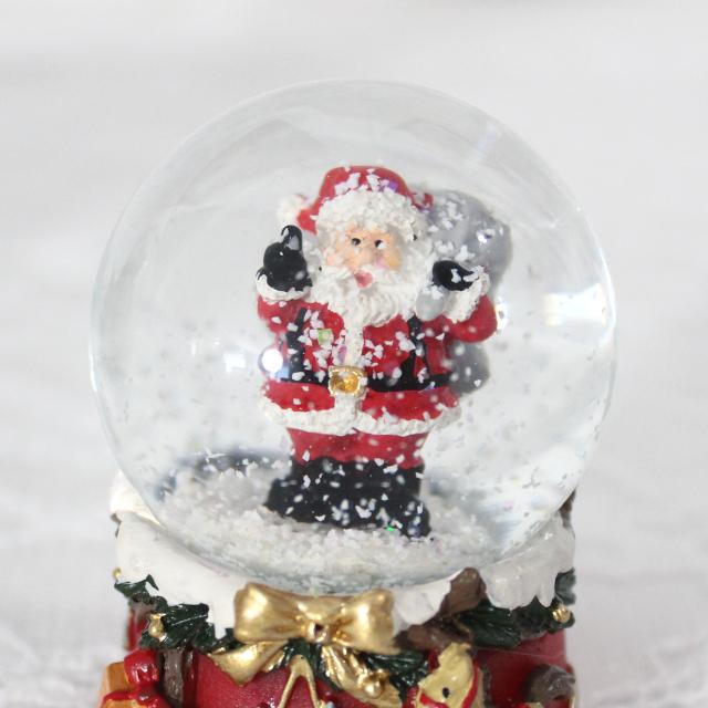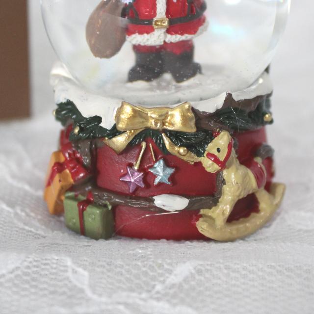 プレゼントバッグを持ったサンタクロースが入ったミニスノードームオブジェ。 |