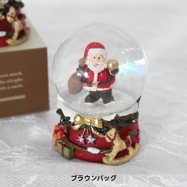 プレゼントバッグを持ったサンタクロースが入ったミニスノードームオブジェ。