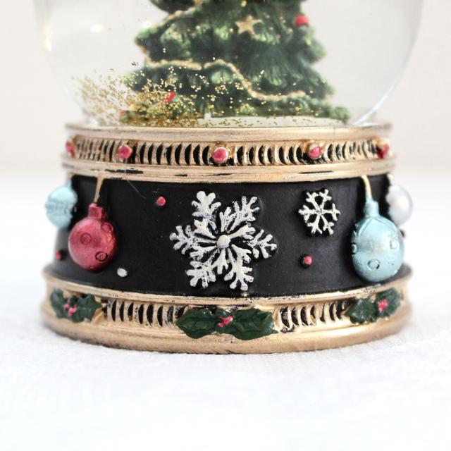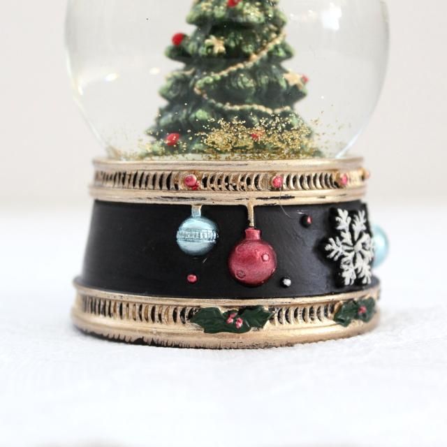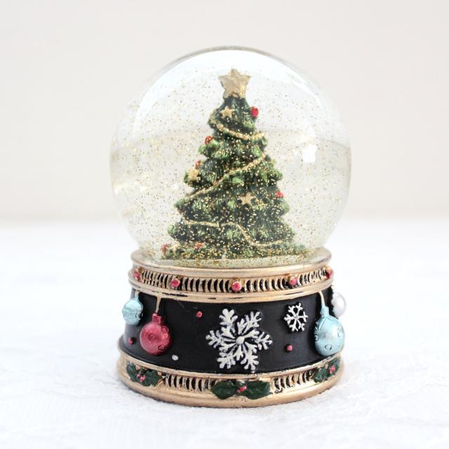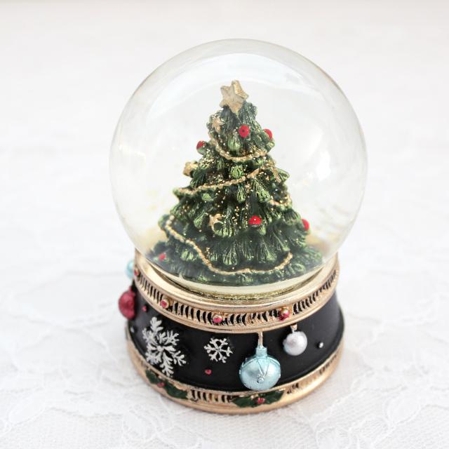 クリスマスツリーが入ったコンパクトサイズのスノードームオブジェ。
