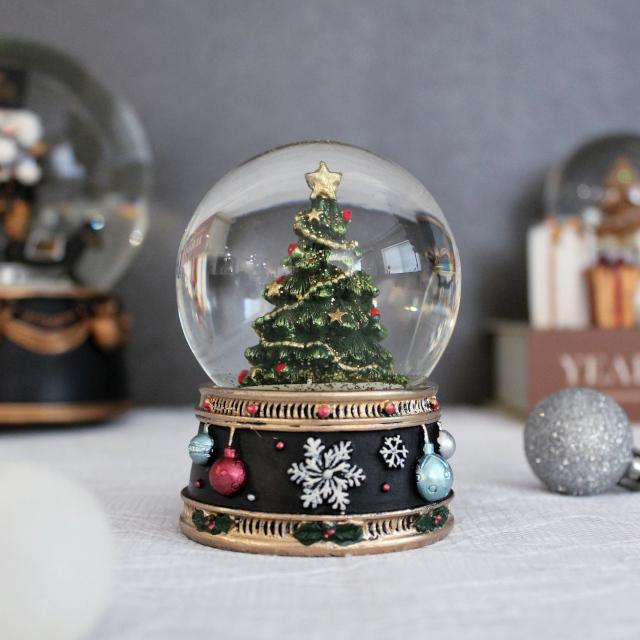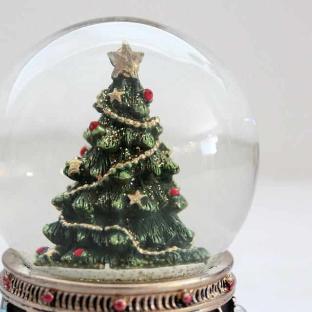 クリスマスツリーが入ったコンパクトサイズのスノードームオブジェ。 |