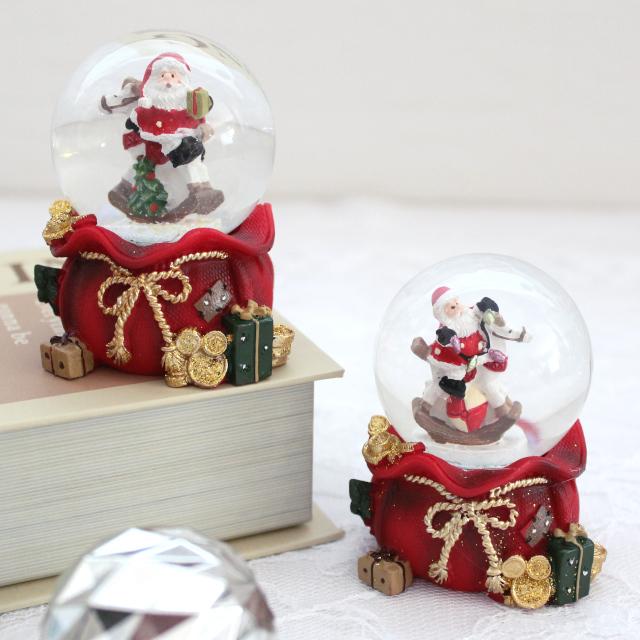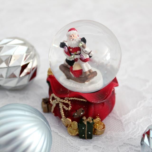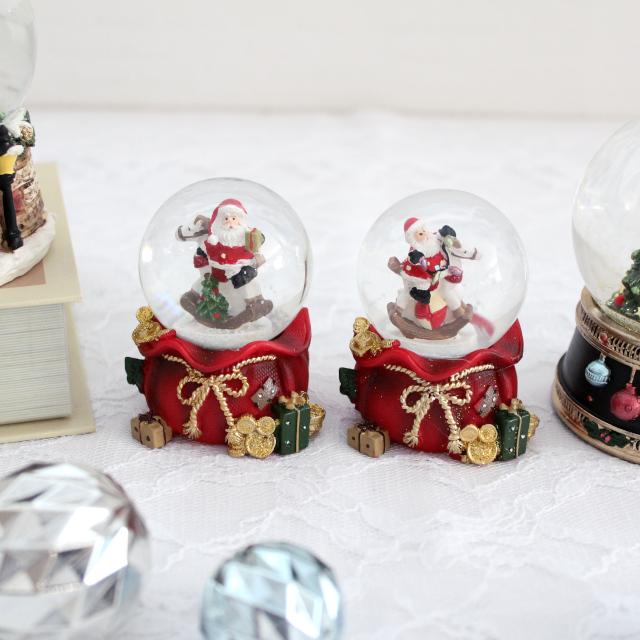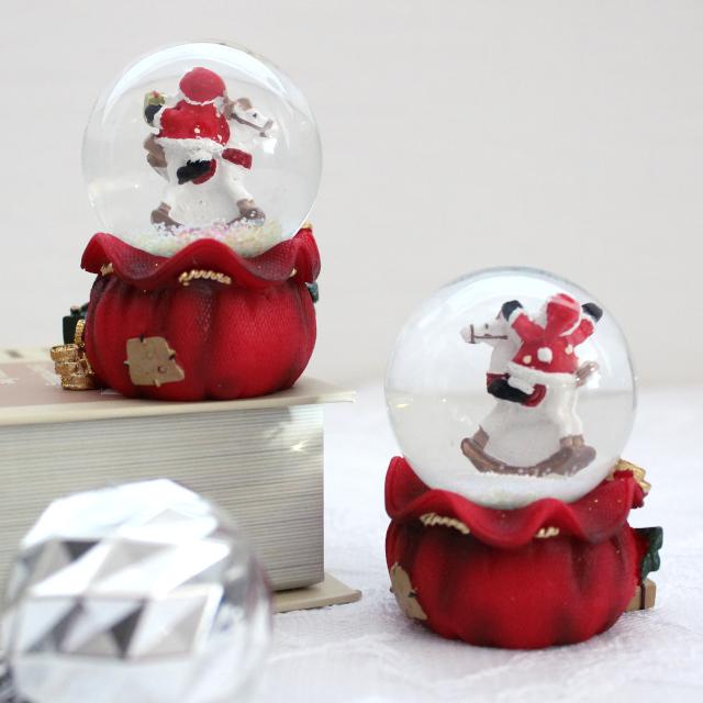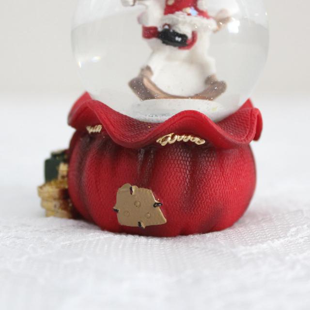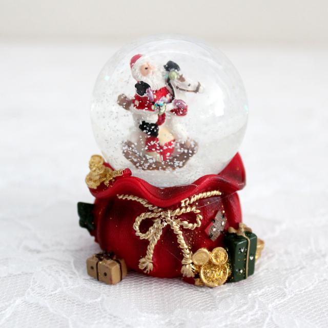 ロッキングホースに乗ったサンタクロースが入ったミニスノードームオブジェ。 |