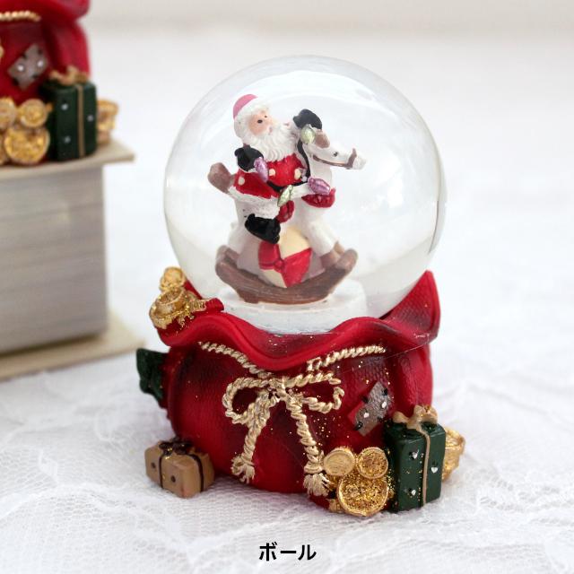 ロッキングホースに乗ったサンタクロースが入ったミニスノードームオブジェ。