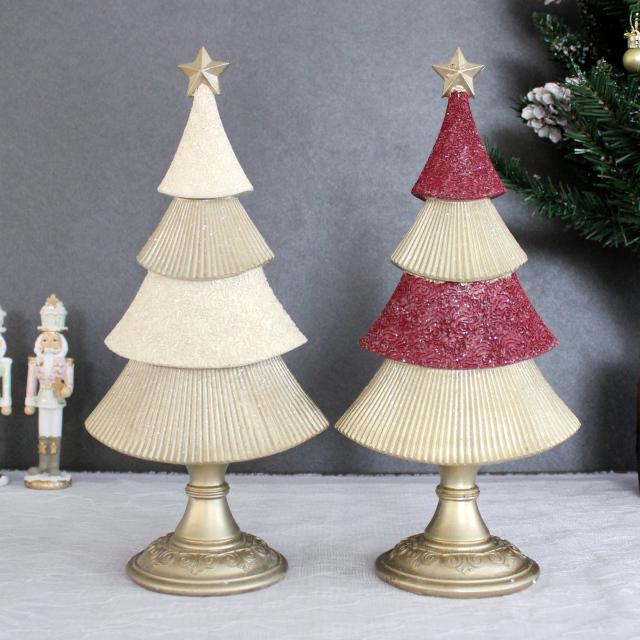 シャンパンカラーのおしゃれなクリスマスツリーオブジェ。 |