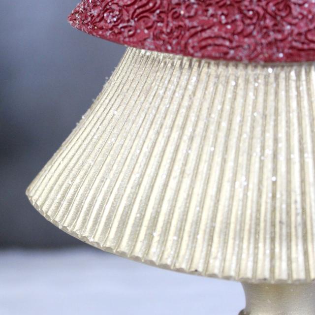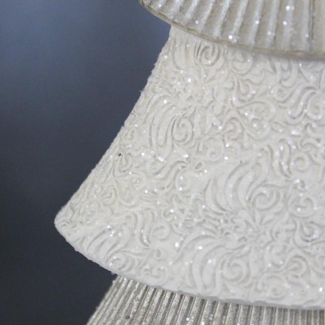 裾が広がったAラインのフォルムがかわいらしく、存在感のある華やかなデザインの置物です。
