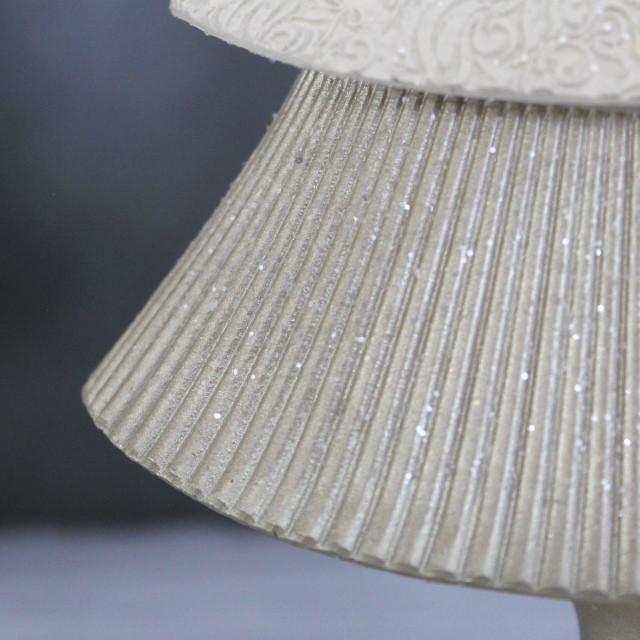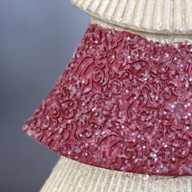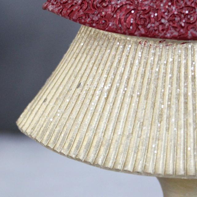裾が広がったAラインのフォルムがかわいらしく、存在感のある華やかなデザインの置物です。