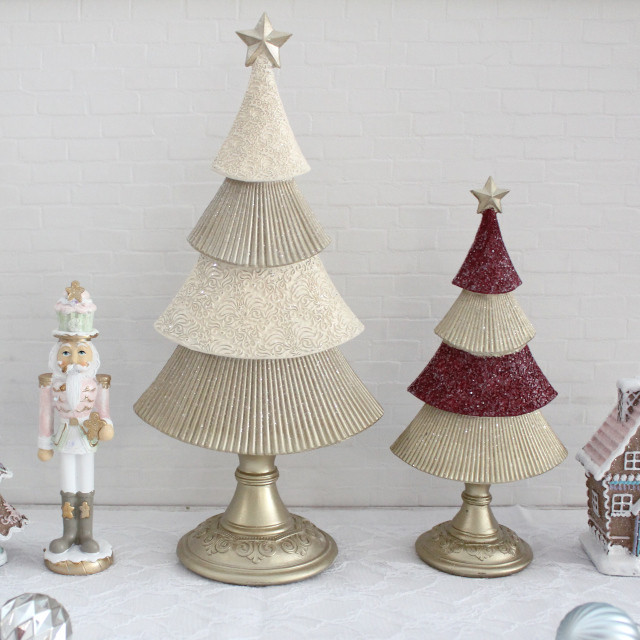 シャンパンカラーのおしゃれなクリスマスツリーオブジェ。 |