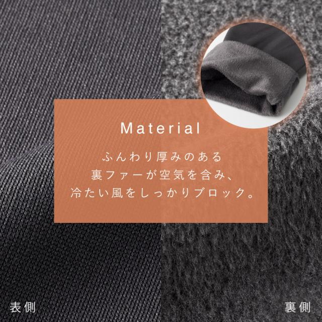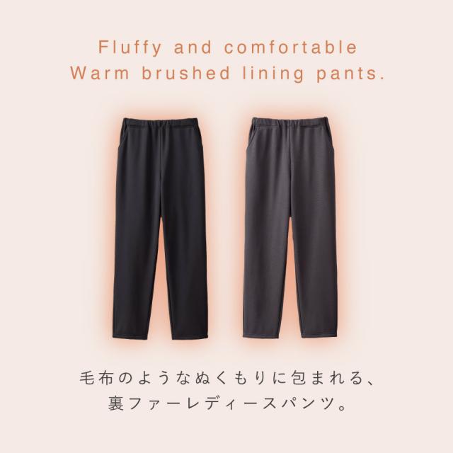 毛布のようなぬくもりに包まれる、裏ファーレディースパンツ。ふんわり厚みのある裏ファーが空気を含み、冷たい風をしっかりブロック。まるで毛布をはいているような、やさしい肌ざわり。