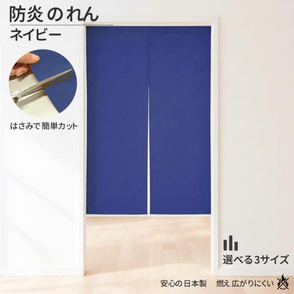 防炎 のれん 90cm丈 ネイビー 間仕切り 目隠し 安心の日本製 カットライン付き 洗える 無地 暖簾 おしゃれ