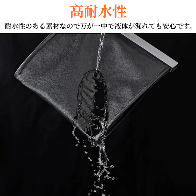 高品質PUレザーと、耐水性のある素材なので万が一中で液体が漏れても安心です、汚れもサッと拭き取れます。高級感のあるシルバーラインがアクセントになっています。