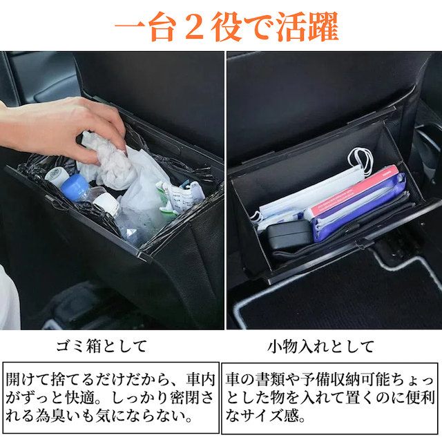 ゴミ箱としてだけではなく。ケーブル、携帯、本、子供の玩具、お菓子などの小物を収納するのにも最適です、小物を収納する車用収納ケースとしても。
