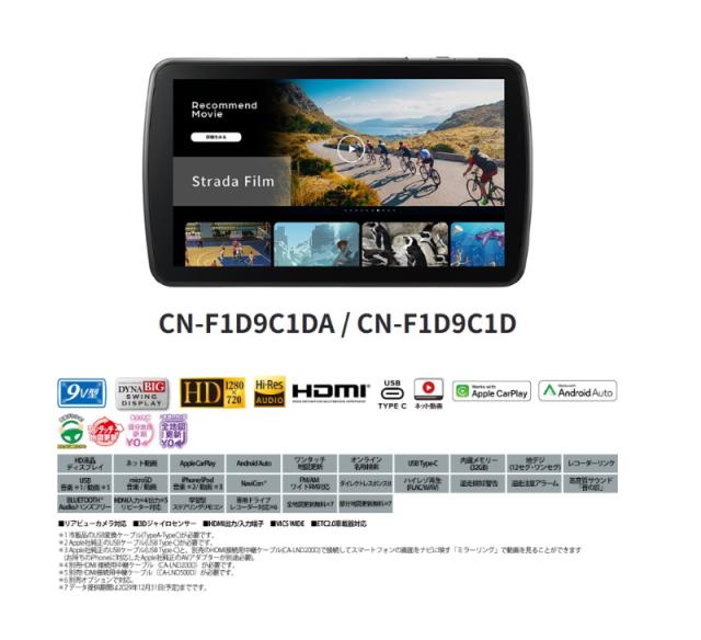 CN-F1D9C1DAは販売管理用の品番で、新地図収録に伴い末尾に「A」を付与しています。実際の製品品番はCN-F1D9C1Dとなります。