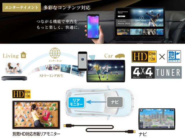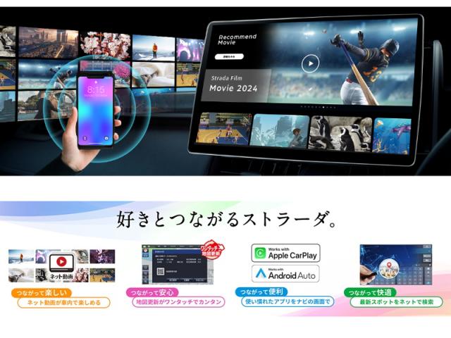 ※上記機能はすべてWi-Fi接続が必要です。走行中は映像が表示されません。通信費はお客様負担となり、対応動画配信サービスは限られます。