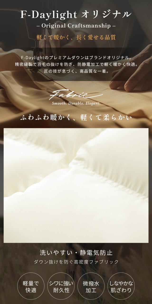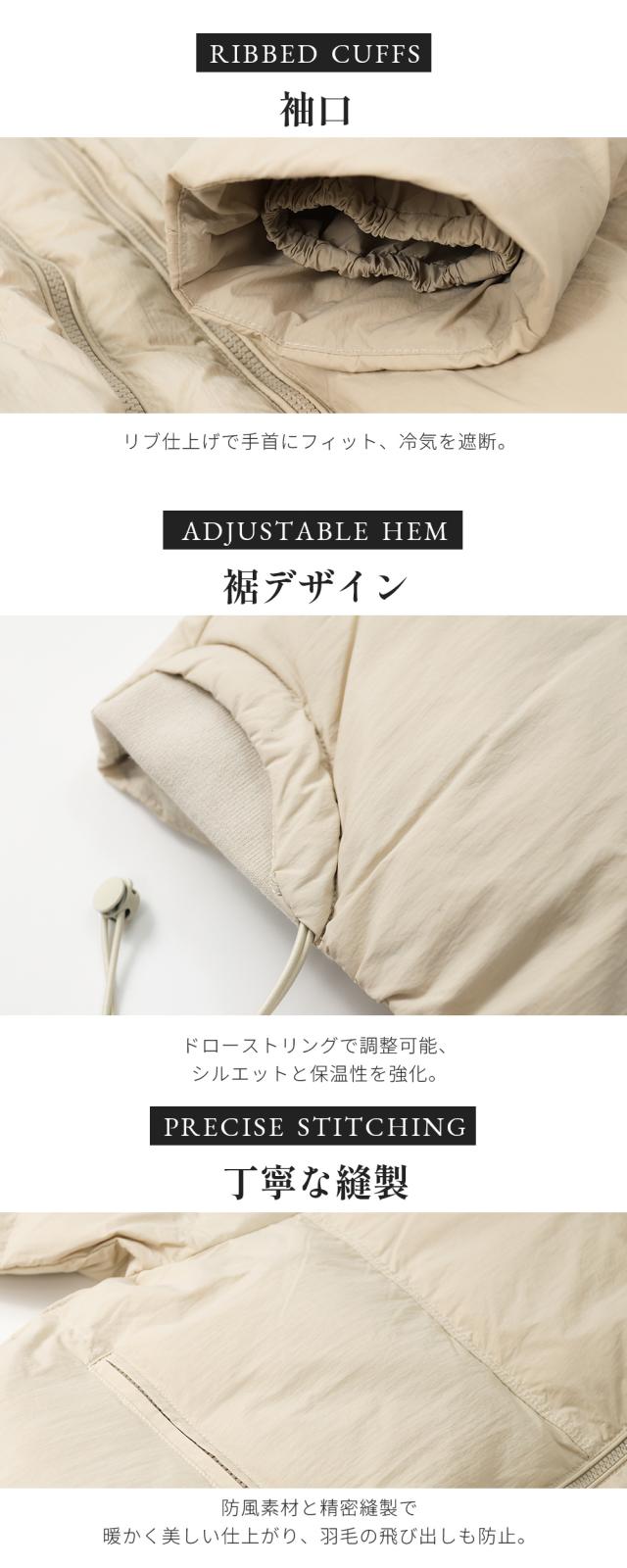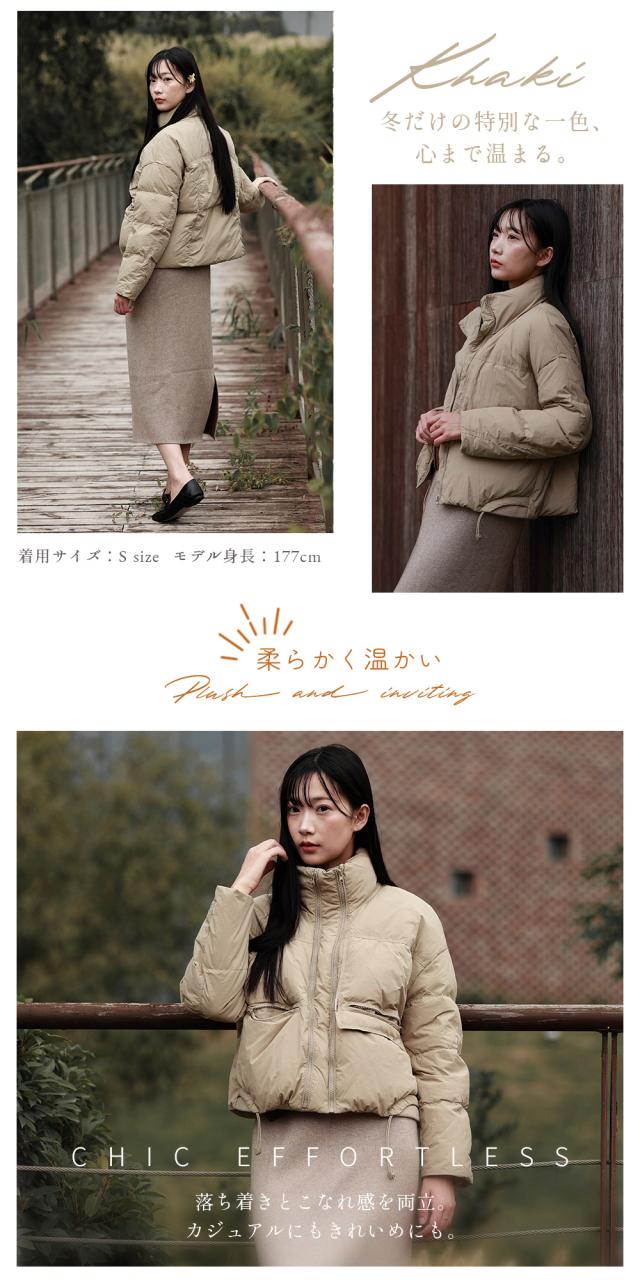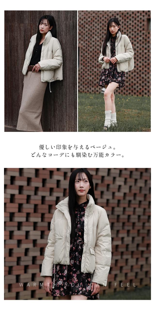 - 思っていたよりも生地がしっかりしていて少しかたい感じがしますが丈夫で気に入りました! ダウンの量も多すぎずちょうどいいです。色も綺麗で可愛いです。