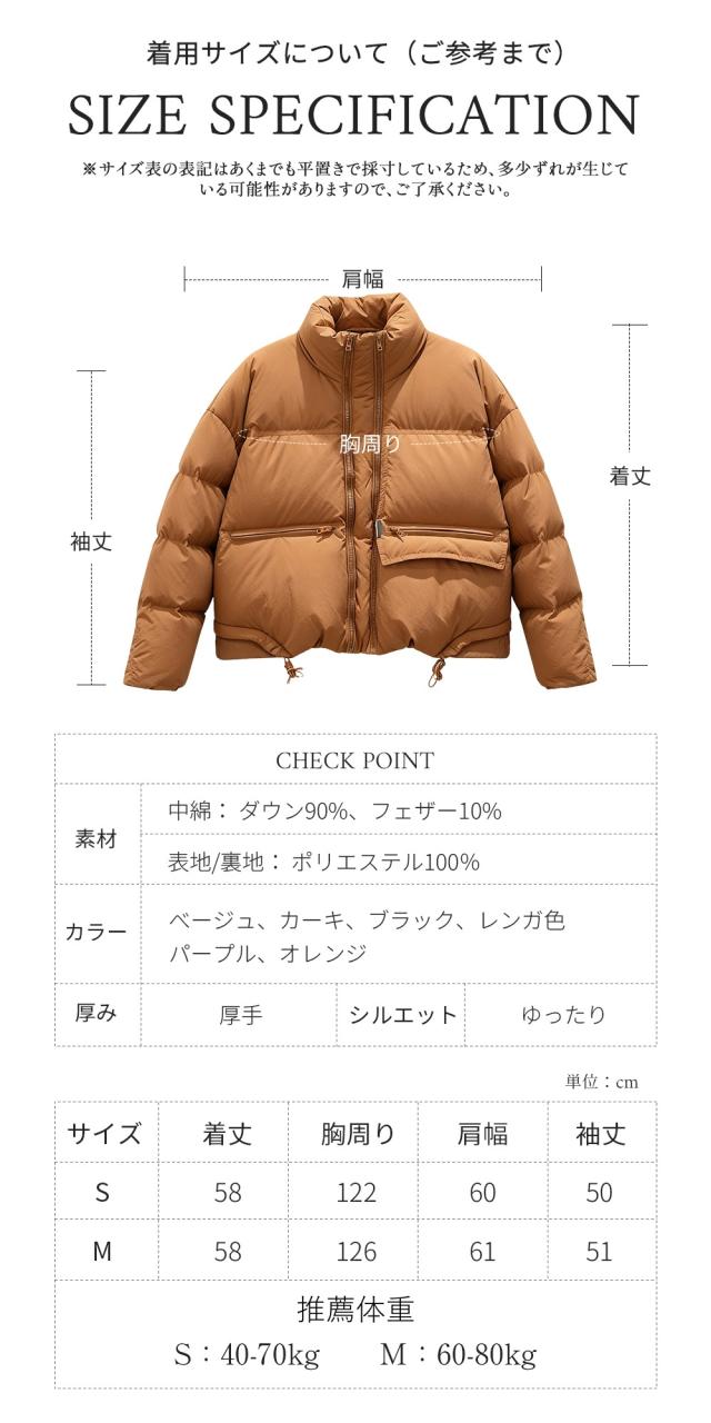 - 軽くて暖かいです。158センチ50キロ普段MですがゆっとりデザインのでSにしました。厚手のトップスの場合も窮屈なく楽に着られるので良かった。ゆっとりデザインいって着太りしないデザインです。嬉しいです。
