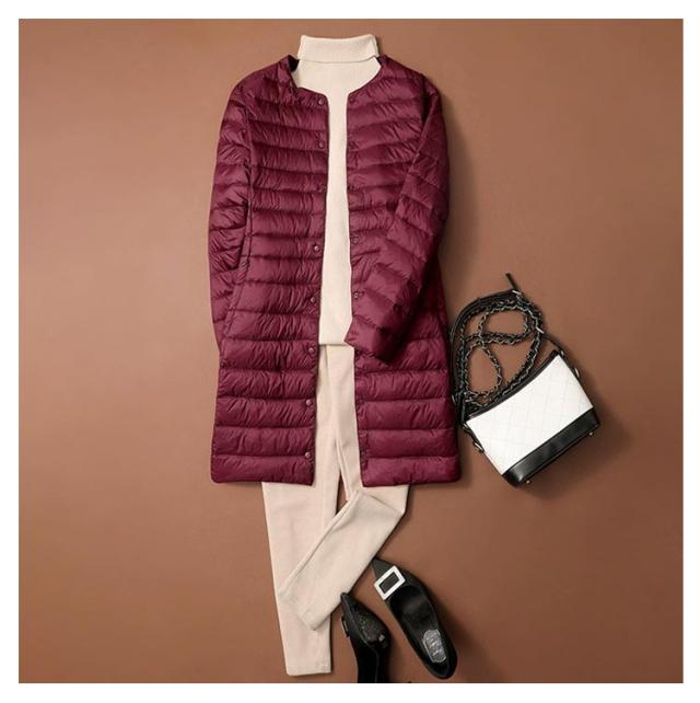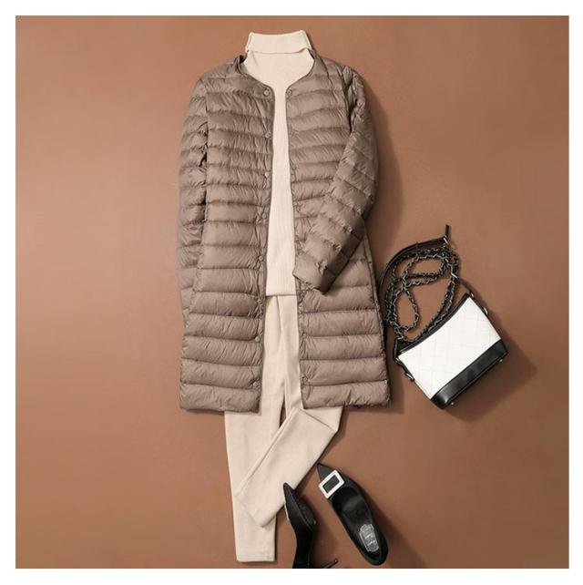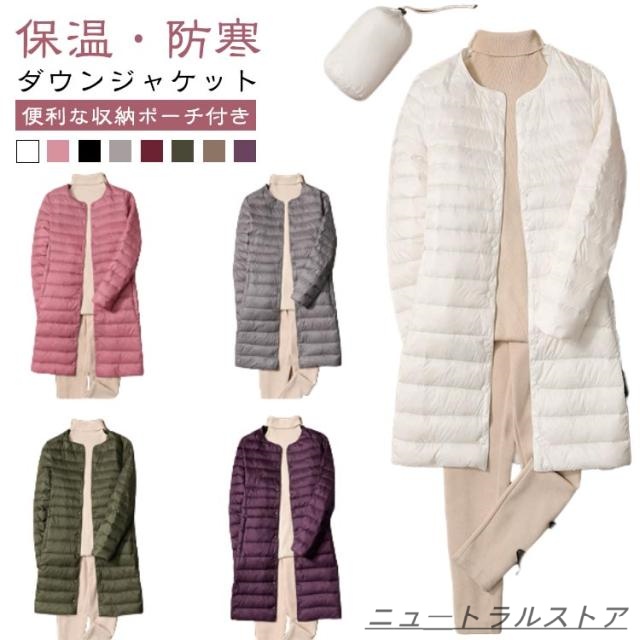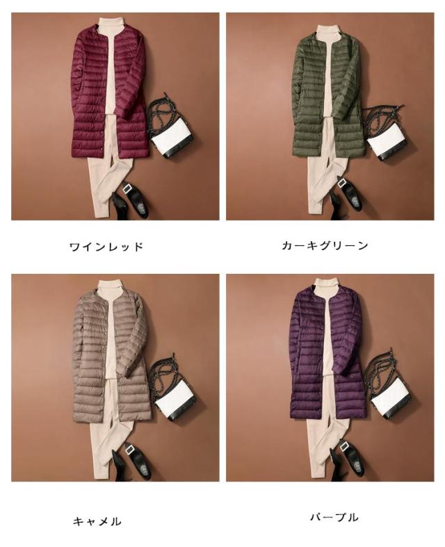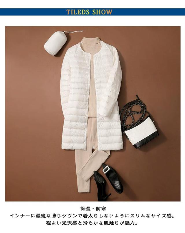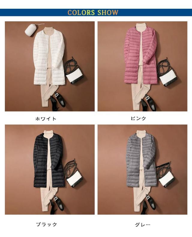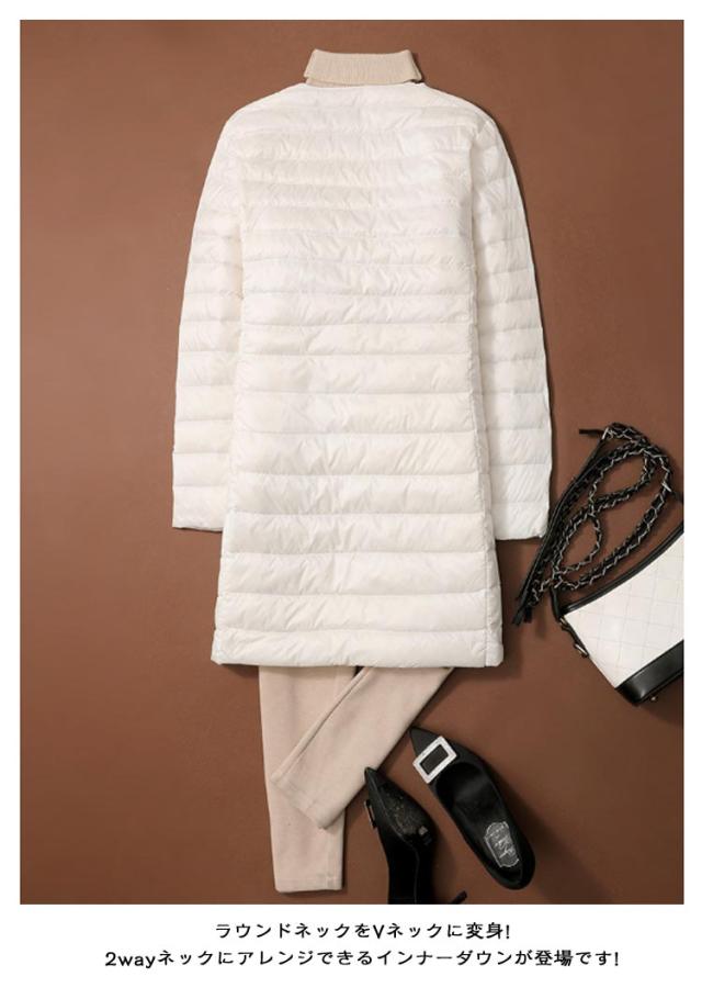 ダウンジャケット キルティング インナーダウン レディース ロング ライトダウン 2way フロントボタン ロングダウン ダウンインナー ジャケット ノーカラー コート インナーダウンライト ライトコート ライトジャケット 軽量
