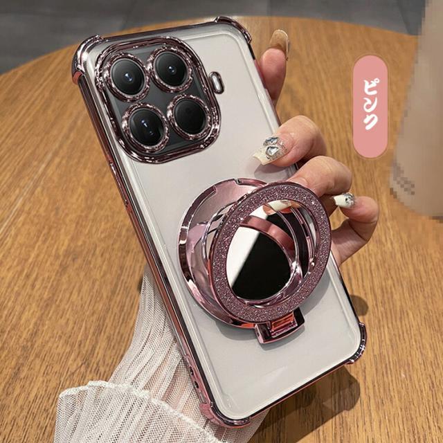 一体型カメラレンズ保護 強化ガラス メイクに便利な化粧鏡付き 片手持ちに便利なリング付き ソフトケース ストラップホール付き シャオミ 15T/15T プロ おすすめ 可愛い お洒落