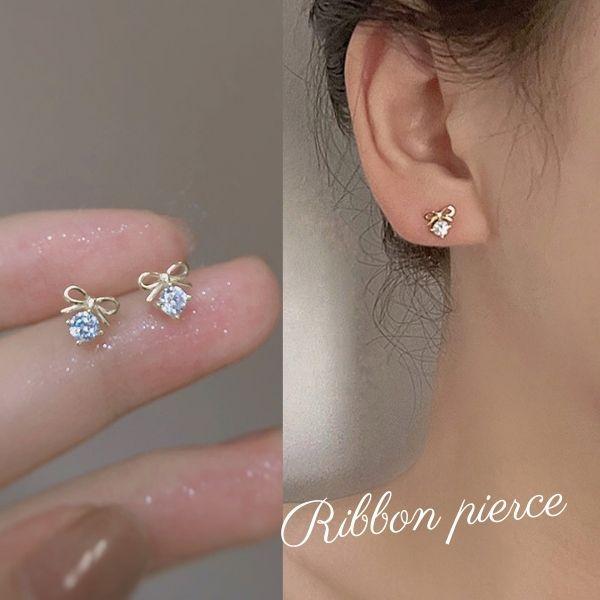 リボンのデザインが可愛いピアス。