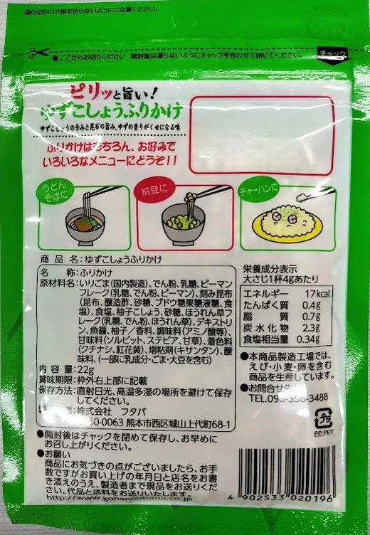 ふりかけ ピリッと旨い ゆずこしょう フリカケ お取り寄せ お試し 22g×2袋セット アレンジ うどん そば 薬味に 御飯の友 フタバ 698円