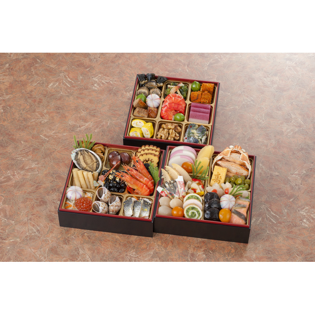 海鮮を中心に盛り込み、様々な味が楽しめる人気の3段重。