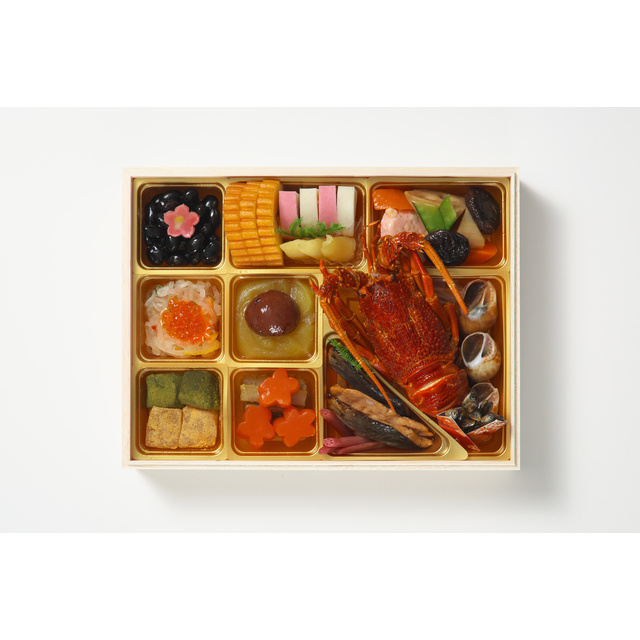 壱之重は、神楽坂くろすが担当 おせちの基本の煮物・ボイルロブスター・鮭幽庵焼・黒豆煮・伊達巻など基本料理を盛り込みました。