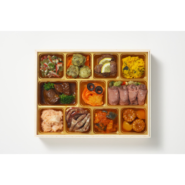 (1)解凍方法:おせち料理は1段ずつ分けて、冷蔵庫(10℃以下)に入れ、約24時間解凍してください。