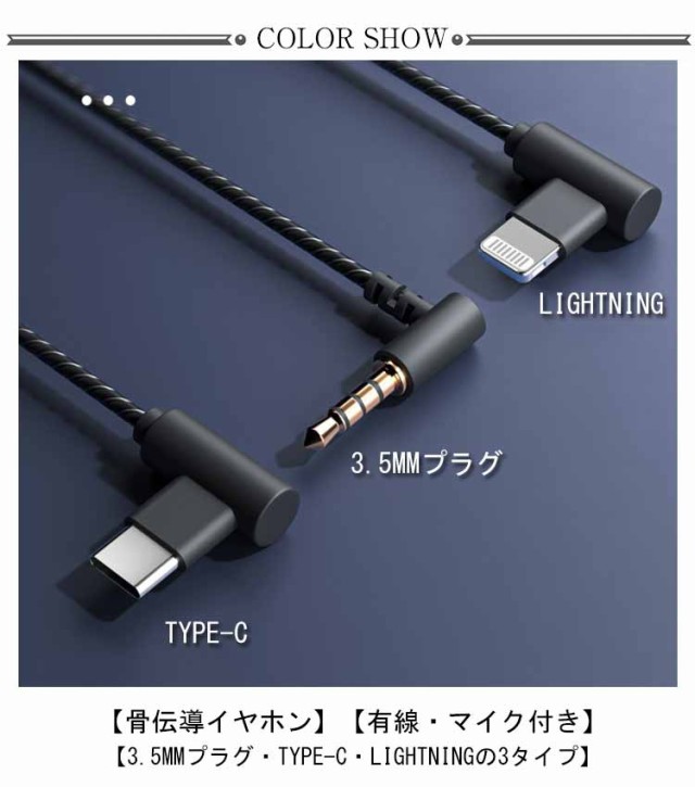骨伝導イヤホン 有線 マイク付き ながら聴きイヤホン 骨伝導ヘッドセット オープンイヤー ハンズフリー通話 軽量 耳を塞がない 骨伝導ヘッドフォン 3.5mm Type-C Lightning イヤホン 在宅ワーク WEB会議 長時間 ゲーム テレワーク iPhone Android 対応 送料無料