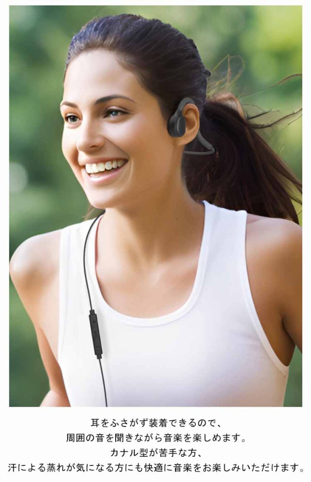 | 【骨伝導イヤホン】【有線・マイク付き】【3.5mmプラグ・Type-C・Lightningの3タイプ】 有線タイプの「ながら聴き」イヤホンです。 耳に掛ける部分はチタン合金製なので、耳の形に合わせて変形することが可能です。 耳をふさがず装着できるので、周囲の音を聞きながら音楽を楽しめます。カナル型が苦手な方、汗による蒸れが気になる方にも快適に音楽をお楽しみいただけます。 軽量だから長時間の装着でも不快感を感じさせません。会話や音楽鑑賞など、一日中、快適に楽しむことができます。 | |