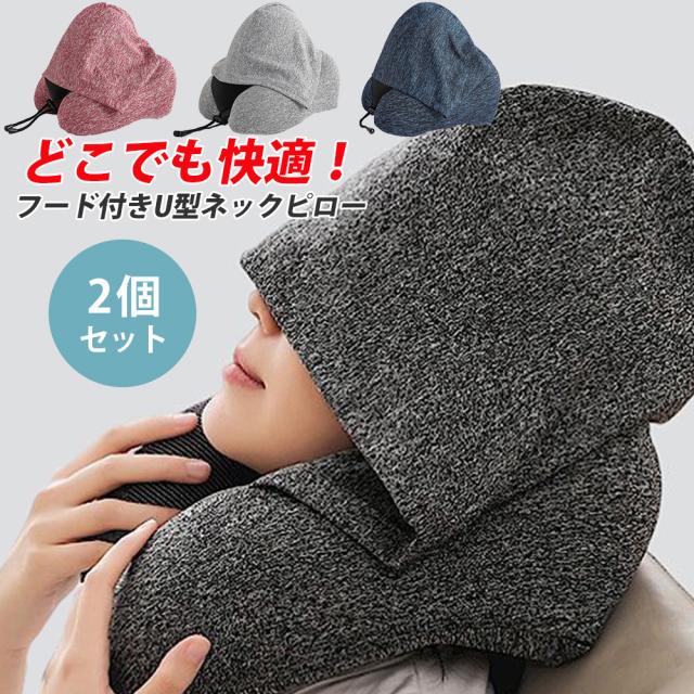 ネックピロー フード付き2個セット【KAN002806×2】低反発 首枕 飛行機 旅行 便利グッズ 旅行グッズ トラベルグッズ 携帯枕仮眠 快眠 トラベルピロー KAN002826