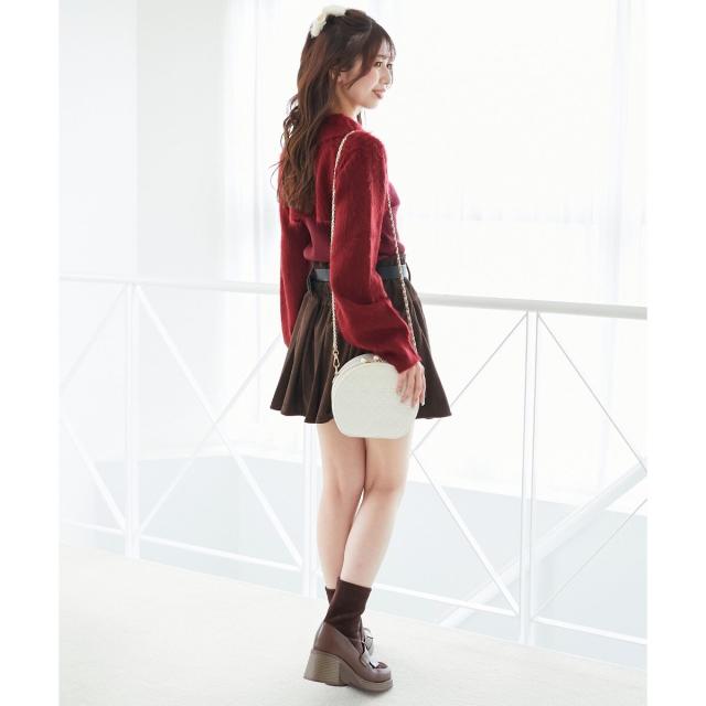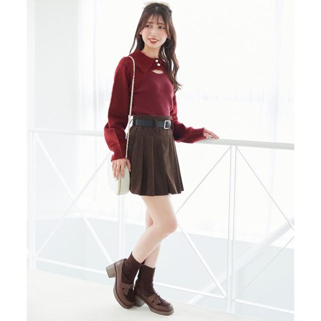 ミニボトムにロングブーツを合わせれば、甘めで可愛らしいガーリースタイルに。
