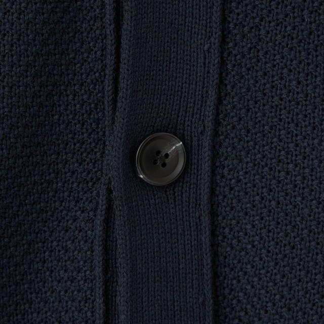 ベーシックながら、凹凸のある表面感や切り替えディティールが施された、シンプルなVネックカーディガンです。