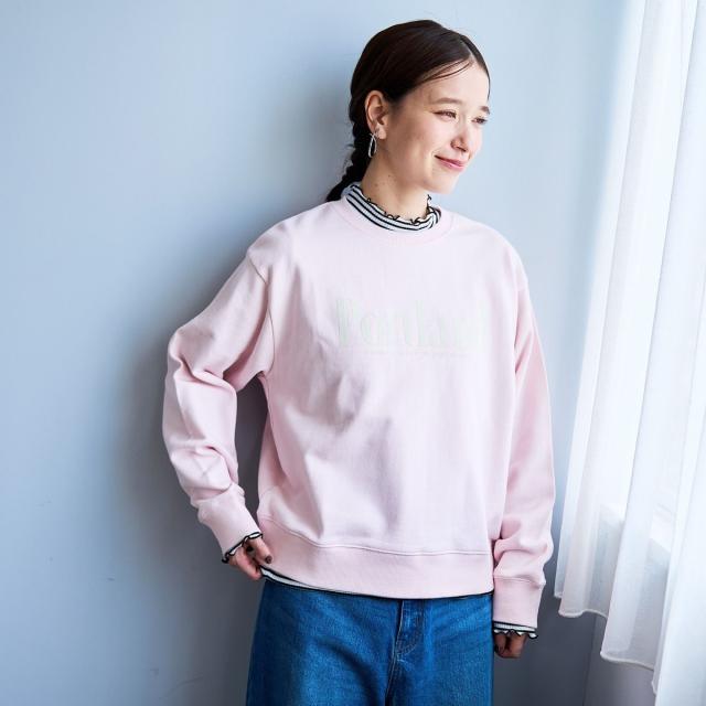 前身頃のフロッキーロゴが目を惹く、コンパクトなサイズ感の裏毛プルオーバー。